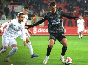 Maça hızlı bir giriş yapan Corendon Alanyaspor, 3. dakikada Ogundu’nun savunma arkasına sarkarak topu filelerle buluşturmasıyla öne geçti. İlk dakikalardan itibaren rakip sahada baskı kuran Alanyaspor, 10. dakikada Mounie’nin penaltı noktası üzerinden yaptığı vuruşla farkı ikiye çıkardı.