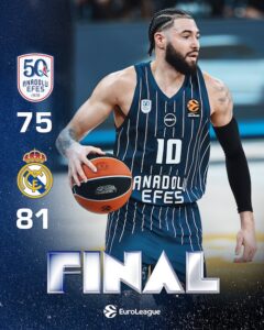 Anadolu Efes, EuroLeague’in 14. haftasında ağırladığı Real Madrid’e 81-75 mağlup oldu. Lacivert-beyazlı ekip, bu sonuçla organizasyonda 9. yenilgisini aldı.